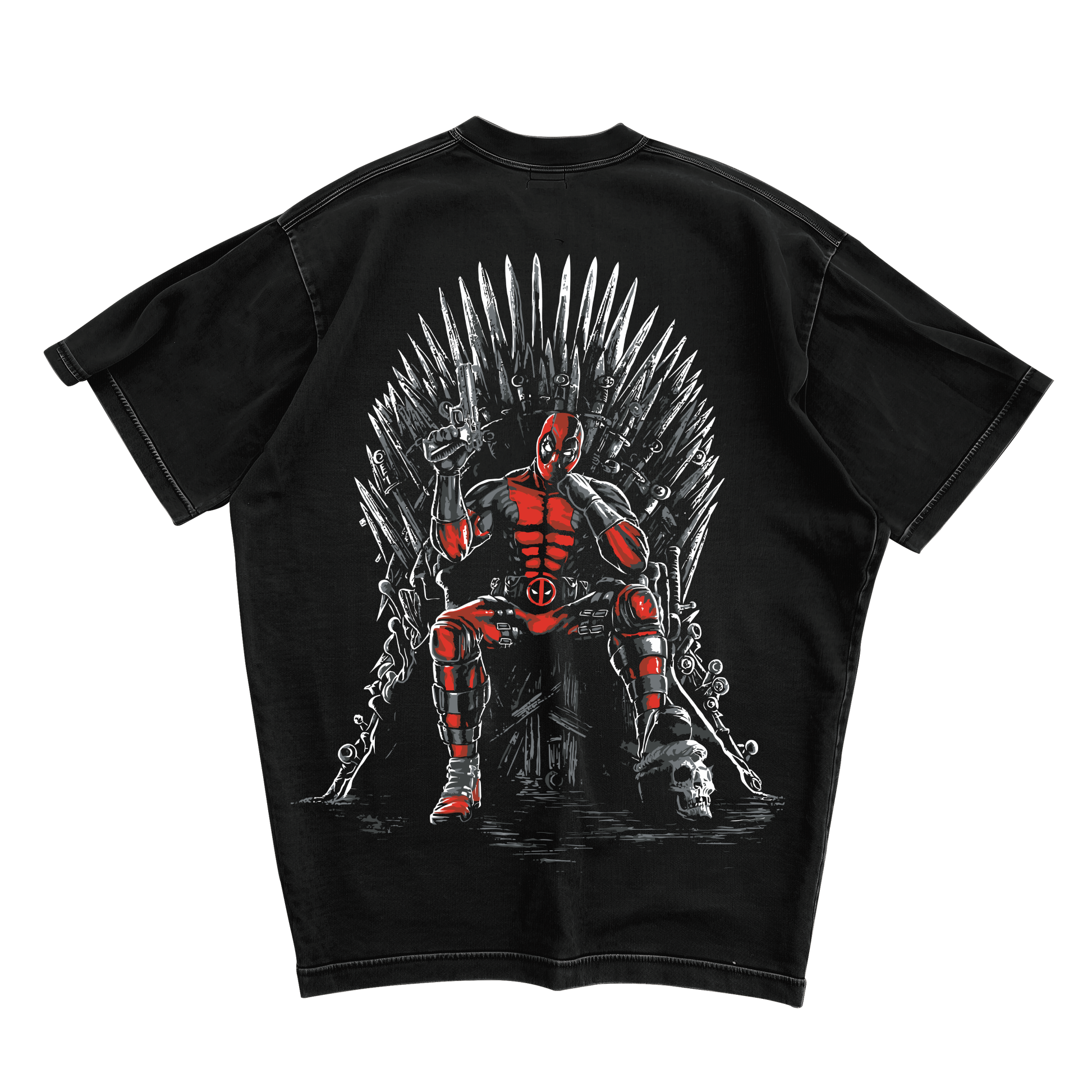 Unleash your inner anti-hero with this bold Deadpool oversized tee. Featuring a striking red-and-black graphic of the Merc With a Mouth locked and loaded, this design pops against the deep black fabric for an instantly iconic look. Whether you’re hitting the streets, chilling with friends, or binge-watching your favorite Marvel movies, this tee brings attitude, comfort, and comic-book energy all in one.